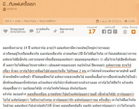 จากกรณีตัวอย่างของกระทู้นี้ มาเล่าว่าไปนั่งเล่นที่หอของรุ่นพี่จนมีอะไรกัน ไม่น่าเลยจริงๆ