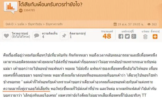 กรณีตัวอย่าง เมาจนได้เรื่อง กับเพื่อนด้วยซ้ำ นี่ขนาดเจ้าของกระทู้เป็นผู้ชายยังรู้สึกเสียใจเลยค่ะ