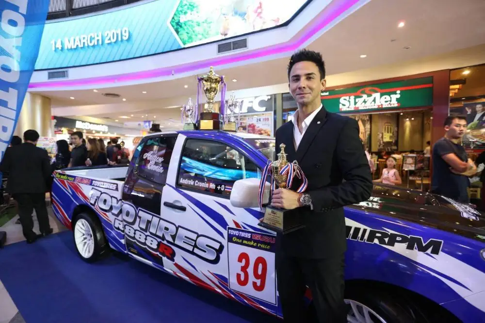 แอนด์ดรูว์ กรเศก นำทัพนักแข่งขันรถยนต์ทางเรียบ รับถ้วยพระราชทานประจำปี 2561 TOYO ISUZU ONE MAKE RACE บริษัท ต.สยาม คอมเมอร์เชียล จำกัด ผู้นำเข้ายาง TOYO โดย คุณอภิชัย ตั้งวงศ์ศิริ ร่วมกับ บริษัท ตรีเพชรอีซูซุเซลล์ จำกัด รถยนต์ ISUZU โดย คุณจิรายุทธ อดิเทพนรางกูร และ บริษัท ฟาอีส ยูไนเต็ด มอเตอร์สปอต จำกัด โดย คุณอดิศักดิ์ มะซอ ผู้จัดการแข่งขัน ร่วมกันจัดงานแถลงข่าวการแข่งขันรถยนต์ทางเรียบชิงถ้วยพระราชทานประจำปี ในรายการ TOYO RACING CAR THAILAND2019 พร้อมเปิดตัว การแข่งขันรถยนต์กะบะไฮไลท์ รุ่น TOYO ISUZU ONE MAKE RACE ต่อเนื่องกันเป็นปีที่ 10 ในงานนี้ยังมีพิธีมอบรางวัลถ้วยพระราชทาน สมเด็จพระเทพรัตนราชสุดาฯ สยามบรมราชกุมารี ซึ่งผู้ที่ได้รับถ้วยแชมป์รุ่น OPEN UNLIMITED POWER ประจำปี 2561 ได้แก่ วิษณุ ทองสินเกษม ส่วน ISUZU ONE MAKE RACE2018 ชิงถ้วยประทาน พระเจ้าวรวงศ์เธอ พระองค์เจ้าโสมสวลี พระวรราชาทินัดดามาตุ ประจำปี 2561 แชมป์รุ่น ISUZU ONE MAKE RACE: CLASS A ได้แก่ ไพฑูรย์ ธรรมาศิริกุล และรุ่นกระบะ OPEN TRUCK FULL RACE ได้แก่ เอกลักษณ์ นาคเกิด ด้านสองนักแสดงหนุ่มมากความสามารถอย่าง พีท ทองเจือ รับถ้วยรางวัลอันดับ 5 ในรุ่น Class A ส่วน หนุ่มแอนด์ดรูว์-กรเศก โคร์นิน เข้ารับถ้วยรางวัลอันดับ 5 ในรุ่น Class B ด้านพระเอกลิเกและนักร้องเสียงดี อาท-ธนากฤต พานิชตระกูล เข้ารับถ้วยรางวัลอันดับ 2 ในรายการ Toyo Racing Car Thailand รุ่นขับเคลื่อน 4 ล้อ และนักแสดงหนุ่ม เป้-สหวัฒน์ จิรชยาสินธรณ์ เข้ารับถ้วยรางวัลอันดับ 5 รุ่นนักแข่ง car club มือใหม่ กิจกรรมภายในงานนอกจากจะมีการมอบถ้วยรางวัลบนเวทีแล้ว ยังมีการแสดงรถที่ได้แชมป์ และรถที่อยู่ในรายการแข่งขันโชว์อยู่ด้านหน้าศูนย์การค้าเมเจอร์รัชโยธิน พร้อมพิธีมอบเงินบริจาคจำนวนเงิน 100,000 บาท (หนึ่งแสนบาท) มอบให้กับมูลนิธิสิริวัฒนาเชสเชียร์ในพระบรมราชินูปถัมภ์ โดยแอนด์ดรูว์ เผยความรู้สึกว่า "ผมรู้สึกดีใจที่มีโอกาสเข้าร่วมแข่งขันรายการนี้ครับ เป็นรายการแข่งขันรถยนต์ทางเรียบที่สนุกมาก ที่สำคัญยังได้มิตรภาพที่ดีจากพี่ๆ น้องๆ นักแข่งด้วยกัน และในปีนี้ผมใช้เลขประจำรถใหม่คือ 39 ครับ สองปีที่แล้วใช้เลข 69 โดยท่านเจ้าคุณวัดระฆังเป็นคนเลือกให้ครับ ปีนี้ผมเข้าแข่งขันในรายการ TOYO ISUZU ONE MAKE RACE2019 ซึ่งเป็นรายการไฮไลท์ ผมต้องขอบพระคุณพี่บัง (อดิศักดิ์) พี่ดา ที่ให้การสนับสนุนผมมาตลอด รวมทั้งขอบคุณสปอนเซอร์แล้วก็ทีมงานทุกคนด้วยครับ ผมจะตั้งใจทำผลงานออกมาให้ดีที่สุดครับ" งานนี้ยังได้รับเกียรติจากคนบันเทิงเข้าร่วมแสดงความยินดีกับผู้ที่ได้รับรางวัล ได้แก่ ดร.วโรดม ศิริสุข ผู้อำนวยการฝ่ายการผลิตบริษัท ไอพีเอ็มโปรดักชั่น จำกัด, ดร.ท