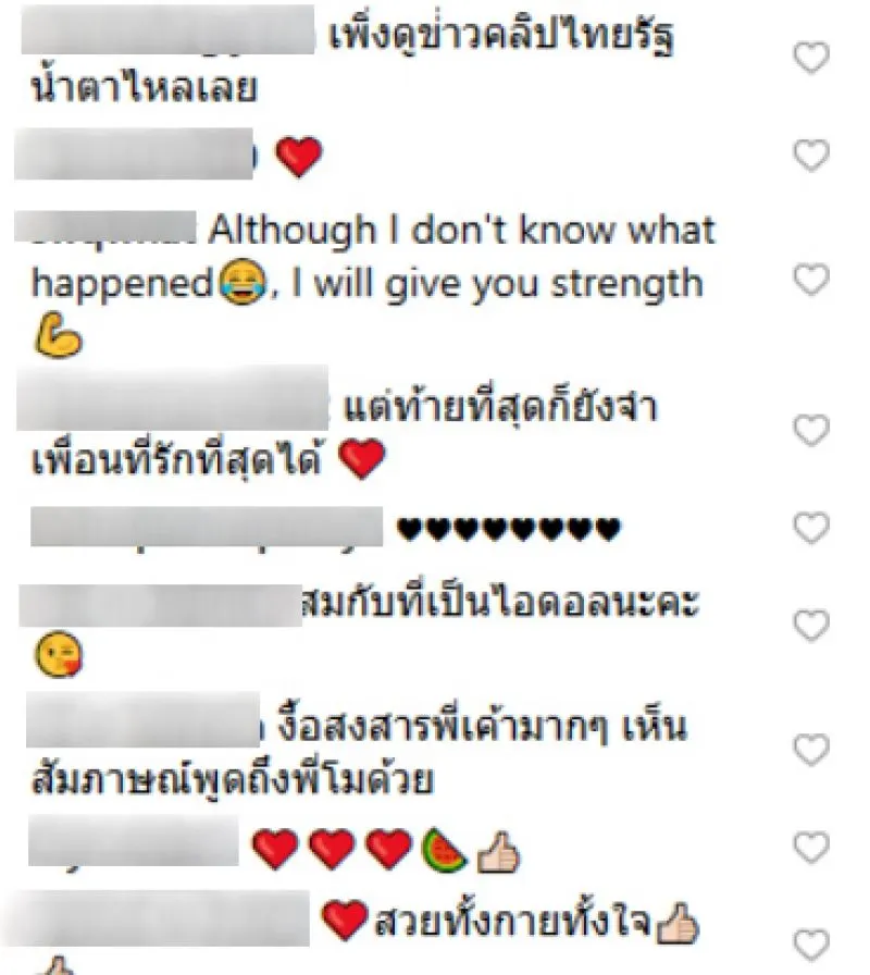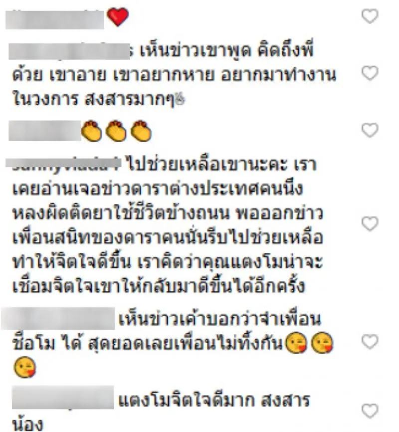 โดยมีคนจำนวนมากเห็นภาพดังกล่าวแล้วต่างแสดงความเห็นใจ ไม่อยากให้ซ้ำเติมอดีตดาราสาว รวมทั้งอยากให้มีหน่วยงานที่เกี่ยวข้องเข้าไปช่วยเหลือ พาไปรักษาอาการป่วยด้วย