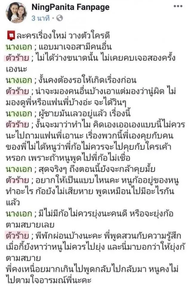 ต่อมาสาวหนิง ได้โพสต์ สมมุติบทสนทนาเหมือนบทละครขึ้นมา อีกทั้งชาวเน็ตยังได้มีการโยงพาดพิงไปถึงสามี อย่างหนุ่ม หนุ่มจิน อีกด้วย ทำให้เกิดกระแสวิพากษ์วิจารณ์อย่างกว้างขวาง ว่านี่เป็นสาเหตุของการล้มป่วยหรือไม่หรือเป็นเพียงบทละครเรื่องใหม่ของเธอกันแน่ และต่อมาไม่นานสาวหนิง นั้นก็ได้ลบโพสต์ทิ้งไป