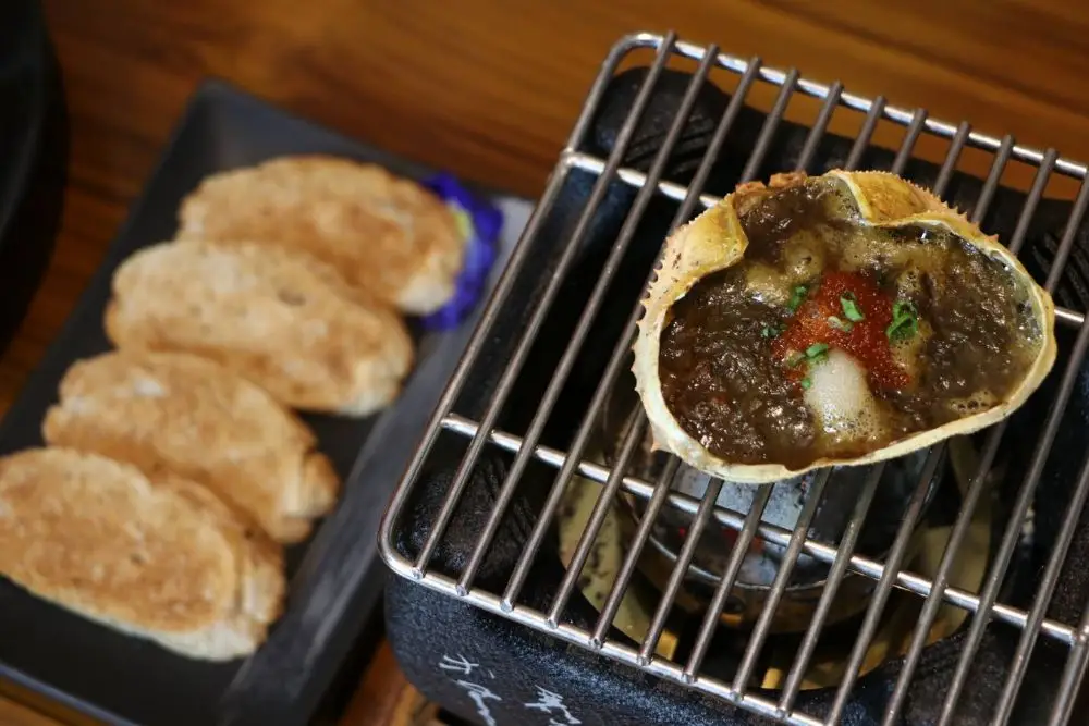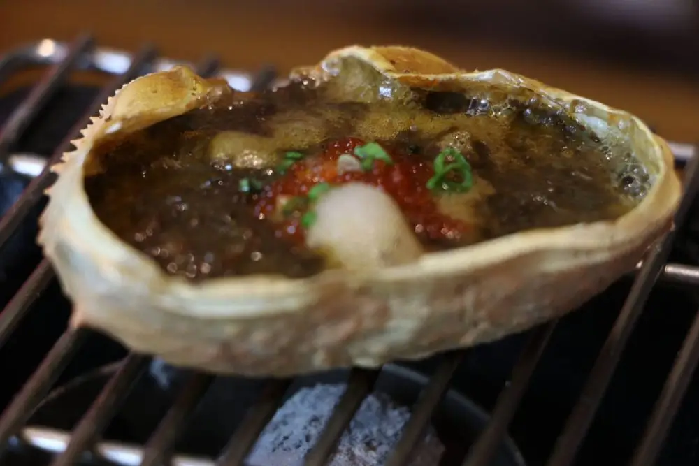 Kani miso มันปูย่างบนเตาถ่านรสชาติหวานมัน