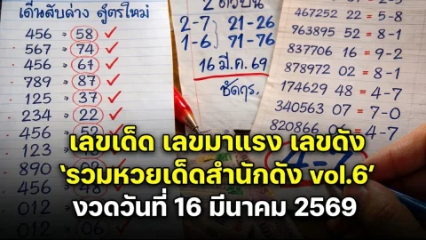 เลขเด็ด เลขมาแรง เลขดัง "รวมหวยเด็ดสำนักดัง vol.6" งวดวันที่ 16 มีนาคม 2569