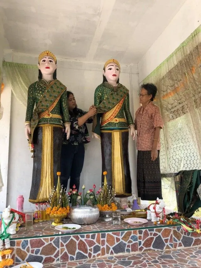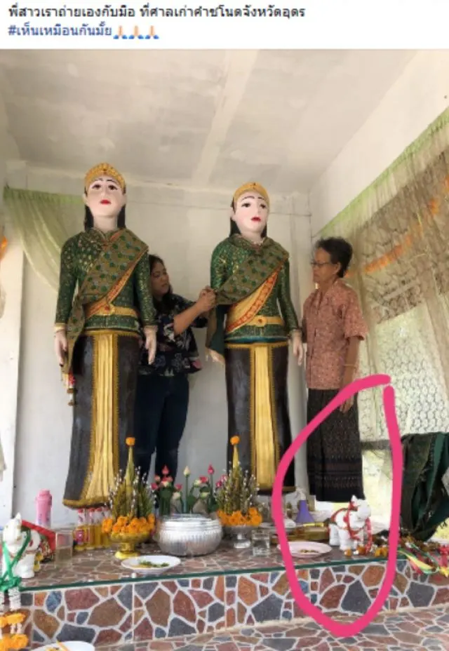 เป็นอีกหนึ่งเรื่องราวที่สร้างความฮือฮาเป็นอย่างมาก เมื่อสมาชิกเฟสบุ๊คที่ใช้ชื่อว่า "ลูกสาว เตี่ย" ได้มีการโพสต์ภาพขณะที่ได้มีการเปลี่ยนผ้าสไบผืนใหม่ ให้กับรูปปั้นสองสาวนาคี ที่ศาลเก่าที่คำชะโนด แต่สิ่งที่ทำเอาถึงกับขนลุกก็คือ เมื่อมองดูภาพดีๆ กลับพบว่าคุณยายที่อยู่ในภาพซึ่งเป็นผู้เฝ้าศาลนั้นไม่มีขา ราวกับว่ากำลังลอยอยู่ สร้างความฮือฮาไปทั้งโซเชียล มีผู้คนร่วมแชร์และเข้ามาแสดงความคิดเห็นเป็นอย่างมาก