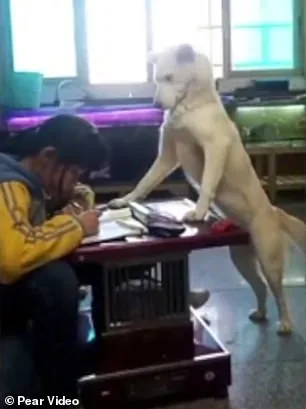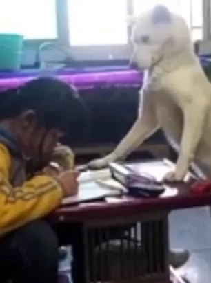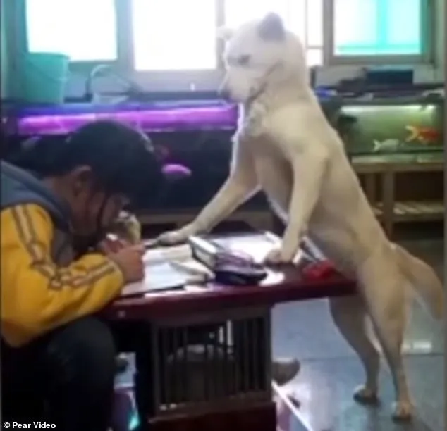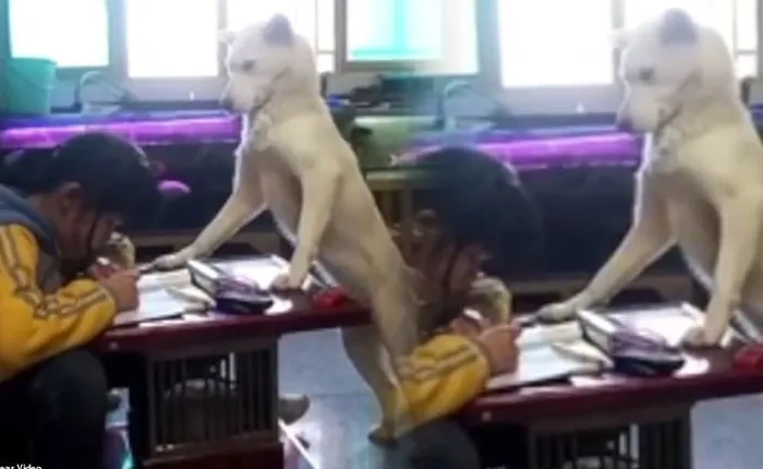 ถึงกับต้องยืนคุม!! พ่อฝึกสุนัขให้ยืนคุมลูกสาวขณะทำการบ้าน เหตุลูกสาวติดมือถือมากเกินไป (มีคลิป)