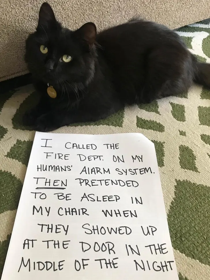 แมวผู้หวังดี แอบเรียกตำรวจดับเพลิงมากลางดึก แล้วกลับไปนอนอย่างหน้าตาเฉย