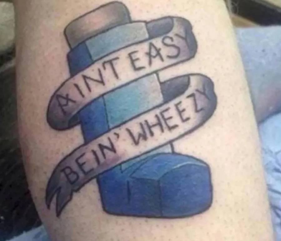 เจ้าของลายสักนี้จะไม่ลืมที่พ่นยาของเขาตลอดไป