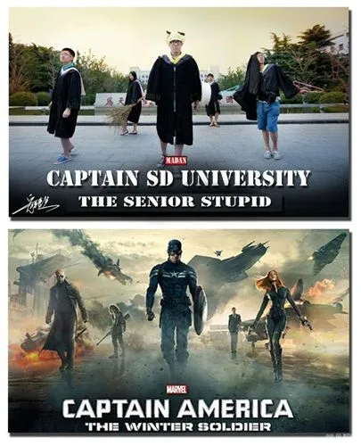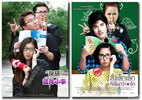 การถ่ายภาพในวันรับปริญญาก็เป็นเรื่องราวที่น่าจดจำและเรียกได้ว่าเป็นครั้งหนึ่งในชีวิต เราขอนำเสนออีกหนึ่งไอเดียสนุกๆ ไว้สำหรับถ่ายภาพบันฑิตใหม่ที่ใส่ชุดครุยรับปริญญาร่วมกับเพื่อนๆ โดยภาพที่เอามานำเสนอต่อไปนี้เป็นของกลุ่มนักศึกษาจีนที่เกิดปิ๊งไอเดีย แทนที่จะถ่ายรูปในชุดครุยแบบธรรมดาเหมือนที่คนอื่นๆที่เค้าถ่ายกัน แต่กลับทำเลียนแบบหนัง เรียกได้ว่าแปลกแหวกแนวมากพวกเขาเกิดไอเดีย ครีเอทการถ่ายภาพโดยเลียนแบบการโพสต์ท่าจากโปสเตอร์ภาพยนตร์ ซีรีส์ต่างๆ อย่างเช่น ซีรีส์เกาหลี และภาพยนตร์การ์ตูน หรือแม้แต่หนังไทยอย่าง ‘สิ่งเล็กๆที่เรียกว่ารัก’ ของเราก็ถูกนำไปล้อเลียนด้วย
