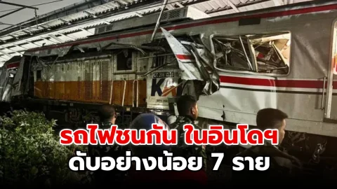 รถไฟชนกันในอินโดนีเซีย เสียชีวิตอย่างน้อย 7 ราย เหตุขบวนทางไกลชนท้าย KRL