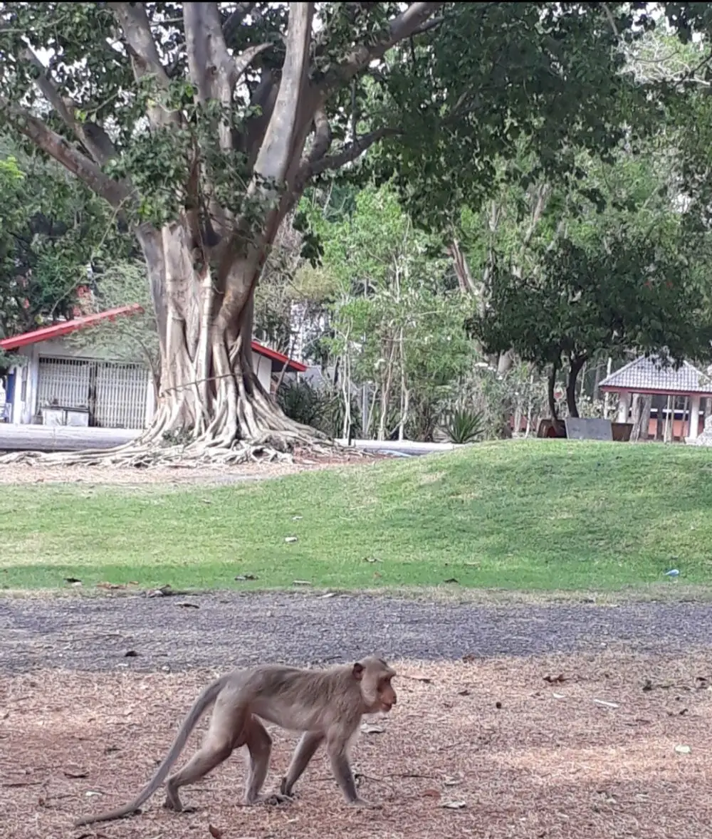พอเลี้ยวเข้าเขตก็จะเจอลิงเลยคะ เยอะมากๆ ต้องขับขี่รถอย่างระมัดระวัง เพราะลิงค่อนข้างคุ้นชินกับรถและคนมาก สมเป็นเจ้าถิ่นจริงๆ5555
