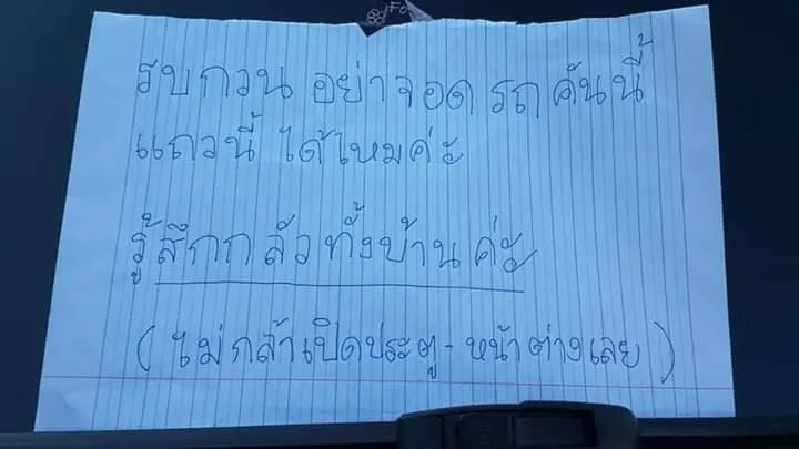 สาวเขียนโน๊ต ไม่ให้กู้ภัยจอดรถแถวบ้าน กับเหตุผลที่ชาวเน็ตวิจารณ์สนั่น!