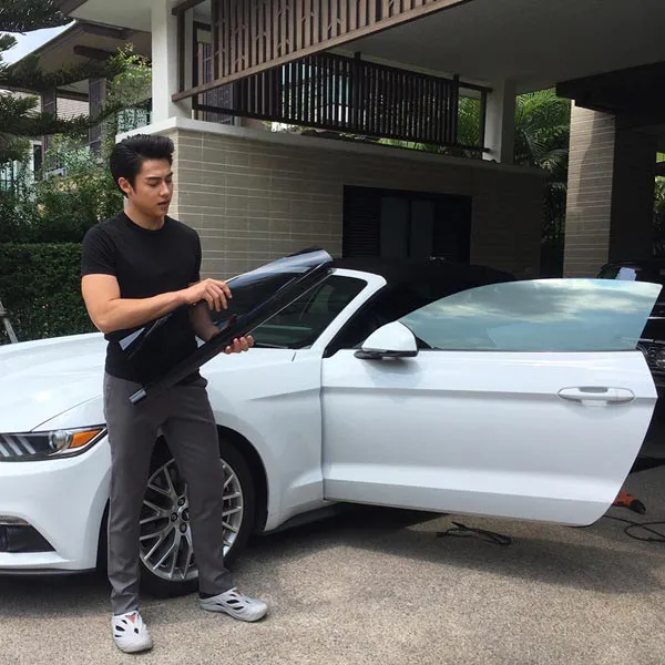 บ้านของพระเอกสุดฮอตคนนี้มีบรรยากาศร่มรื่นน่าอยู่มาก ๆ เพราะมีทั้งต้นไม้น้อยใหญ่รายล้อม สนามหญ้ากว้าง ๆ แถมยังมีสระว่ายน้ำขนาดใหญ่ และเนื่องจากเจ้าตัวเป็นคนรักรถและชอบสะสมรถโบราณเป็นพิเศษ เลยมีโรงรถเก่ารุ่นเทพ ๆ เป็นของตัวเอง ซึ่งหากใครติดตาม IG ก็จะได้เห็นบ่อย ๆ เลยทีเดียว หากใครยังไม่เคยเห็นก็ตามชมพร้อม ๆ กันเลยค่ะ