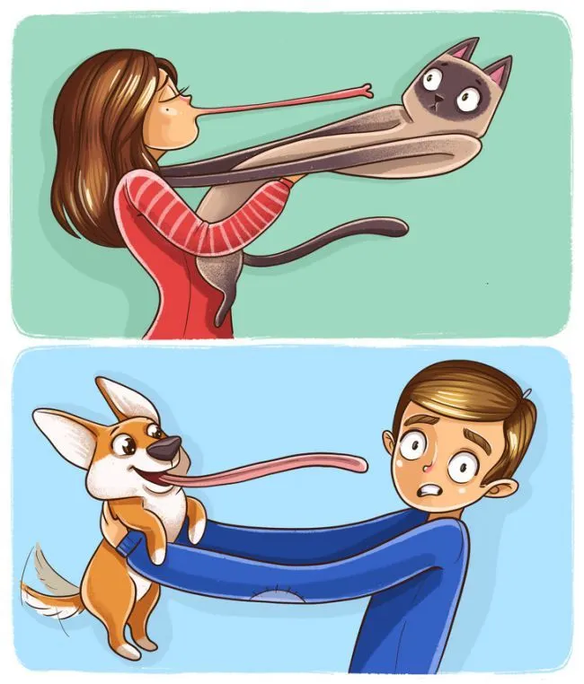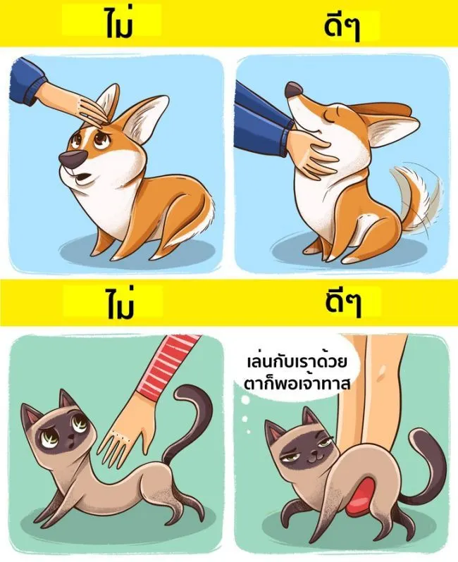 แมวมักจะถอยห่างจากเรื่องเมื่อเราจะจุ๊บๆมัน แต่น้องหมามันกจะพุ่งเข้าใส่เพื่อเลียเรา