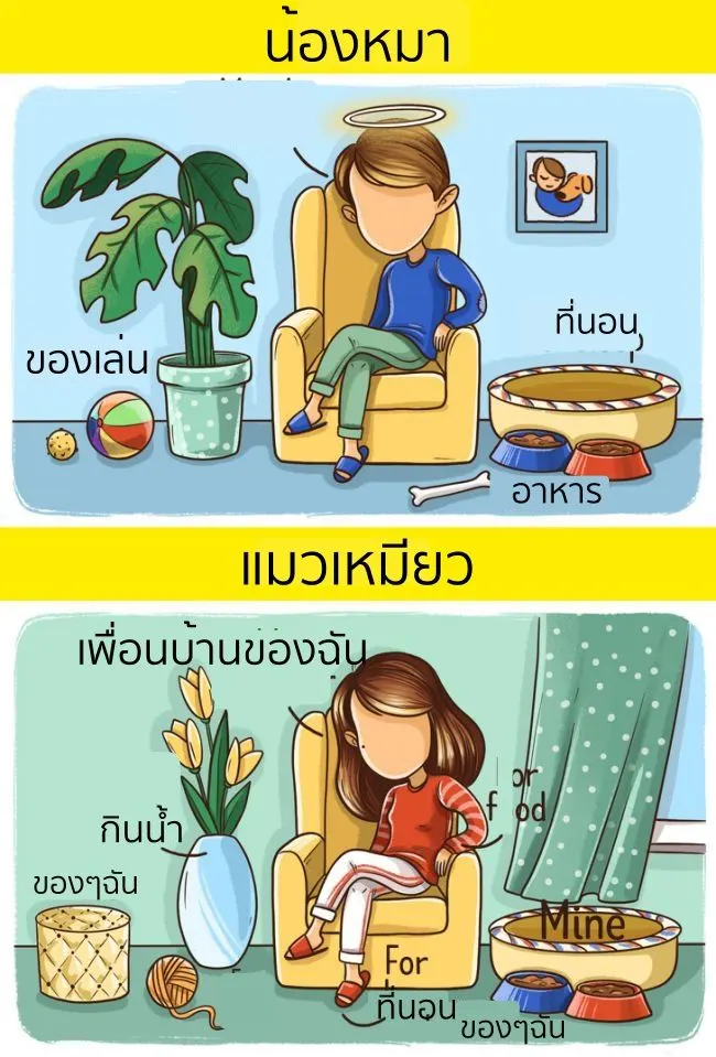 มันไม่ใช่แค่ชื่อเรียกและเสียงร้องที่แตกต่างกันระหว่างสุนัขและแมวเท่านั้น เพราะเบื้องหลังขนปุยของพวกเขา มีนิสัยใจคอที่ต่างกันแบบสุดขั้วแล้ว ซึ่งแม้ว่าพวกมันจะน่ารัก และเป็นสัตว์เลี้ยงใครๆก็ชื่นชอบ แต่นิสัย และการแสดงออกในพฤติกรรมของพวกมัน เรียกได้ว่าแตกต่างกันสิ้นเชิง เหมือนกับอยู่กันคนละโลก ระหว่างน้องหมากับแมว