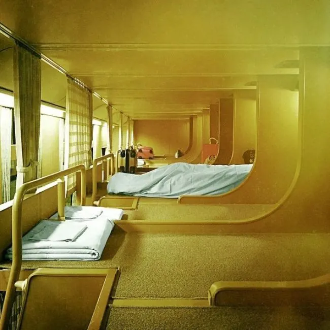 ขบวนรถไฟ Sunrise Seto ที่ไปยังอิซูโมะ ไม่มีที่นั่งแบบทั่วไป แทนที่จะเป็นที่นั่งจะเป็นที่นอนแบบ “โนบิโนบี” ซึ่งให้นอนที่นอนที่เป็นพื้นแบบพรม