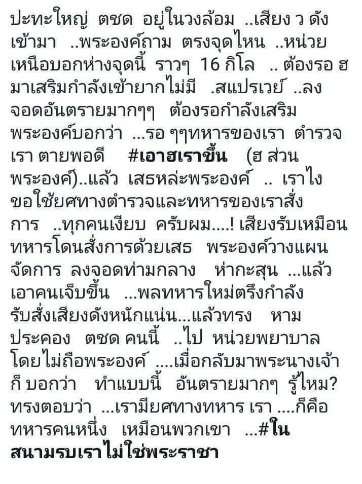 พระองค์บอกว่า ...รอ ๆๆทหารของเรา ตำรวจเรา ตายพอดี เอา ฮ.เราขึ้น (ฮ. ส่วนพระองค์)