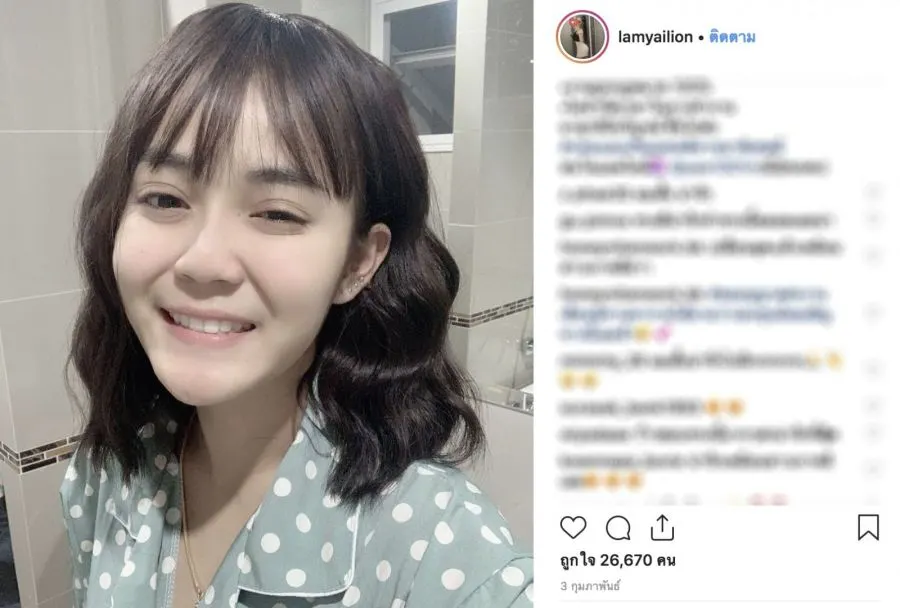 เมื่อวันที่ 3 กุมภาพันธ์ ที่ผ่านมานี้ "สาวลำไย" ได้โพสรูปภาพลงบนอินสตาแกรมส่วนตัวซึ่งเป็นรูปภาพของ "สาวลำไย" ที่ต้องบอกเลยว่าเปลี่ยนลุคไมจากเดิมมากซึ่งในรูปเป็น "สาวลำไย" ในผมทรงหน้าม้า และผมด้านหลังสั้น ซึ่งทำเอาเหล่าแฟนคลับมาชื่นชมเป็นจำนวนมาก ทั้งบอกว่าทรงนี้น่ารักมาก เหมือนสาวเกาหลี จะน่ารักขนาดไหนไปชมกันเลยค่ะ