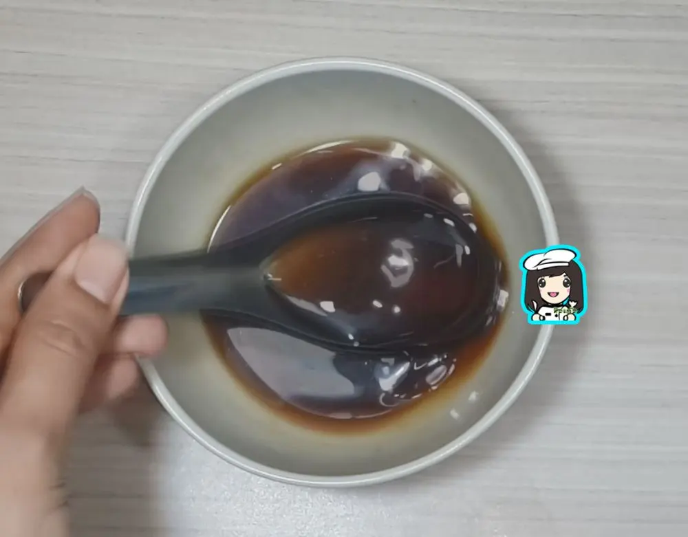 2.ละลายแป้งมันกับน้ำเปล่าเตรียมไว้ ใช้ถ้วยอีกใบผสมน้ำมันหอย ซีอิ้วขาว น้ำตาลทราย น้ำเปล่า คนให้ละลาย พักไว้ใช้เป็นซอสผัดปรุงรส