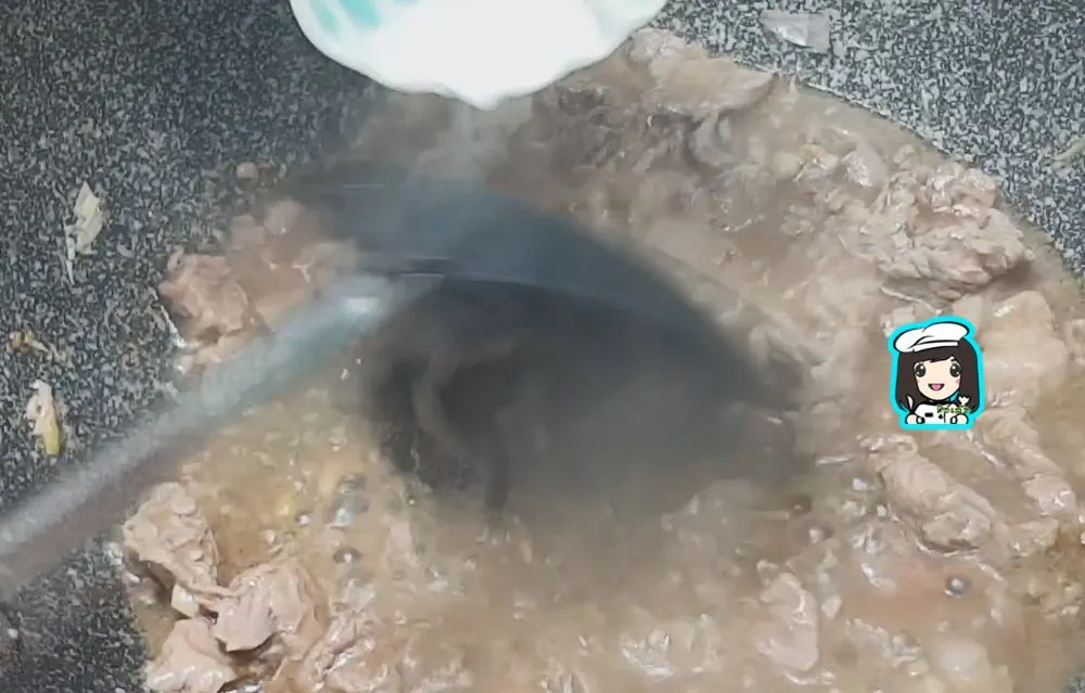 ผสมไว้ผัดคลุกจนหอมดีแล้ว เติมแป้งมันละลายน้ำจนน้ำข้น