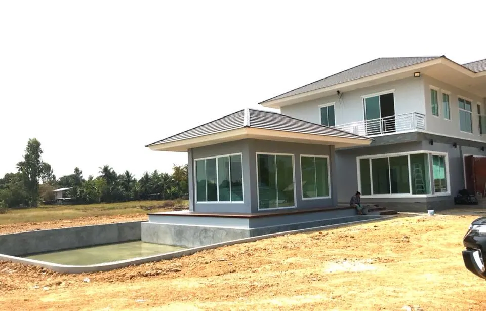 “บ้านหลังนี้ถือว่าเป็นบ้านหลังใหม่ล่าสุด ซึ่งยังไม่เสร็จดี ต้นไม้ก็ไม่ได้ลง บ้านหลังนี้มาสร้างที่บ้านของเกิดตัวเองเพราะปกติจ๊ะทำพิธีไหว้ครูทุกปี ซึ่งก็จะทำพิธีที่บ้านอีกหลังหนึ่ง ห่างไปประมาณ 200 เมตร แต่ไม่มีที่จอดรถ บวกกับเราเองก็จะมาตั้งโรงลิเกตรงนี้ เลยสร้างบ้านซะเลย เพราะเวลามีงานมันจะได้สะดวกสบาย”