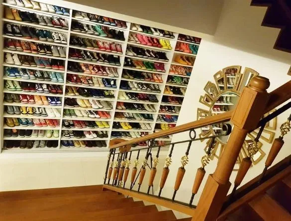 ซึ่งราคาแต่ละคันก็ไม่ธรรมดา แถมยังมีชั้นเก็บรองเท้าสุดอลังการที่เต็มไปด้วยสนีกเกอร์ราคาแพงนับร้อยคู่ นอกจากนี้ยังมีห้องแต่งตัวขนาดใหญ่ที่จัดเรียงเสื้อผ้าและกระเป๋าแบรนด์เนมไว้เป็นระเบียบ โดยทั้งหลังเน้นการตกแต่งแบบเรียบหรูดูมีระดับอลังการสมฐานะจริงๆค่ะ