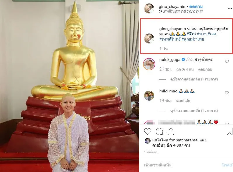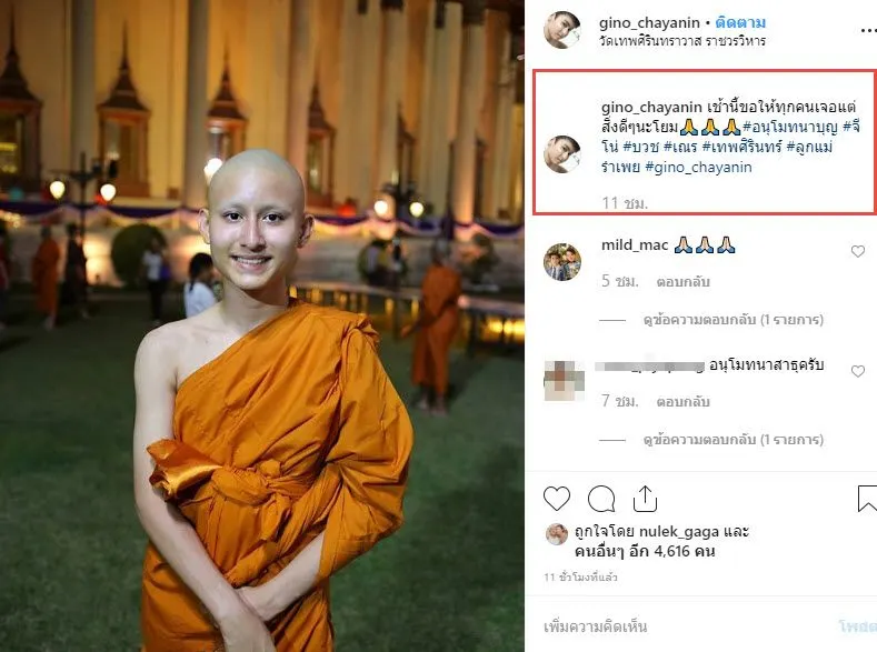 แต่ล่าสุด (29 มี.ค. 62) “จีโน ชญานินท์” ได้เข้าพิธีบรรพชาสามเณร ณ วัดเทพศิรินทราวาส ราชวรวิหาร โดยเป็นการบรรพชาสามเณร (หมู่) ภาคฤดูร้อน อย่างไรก็ตามทางทีมงานของเราก็ต้องขออนุโมทนาบุญกับ “เณรจีโน่” ด้วยนะคะ