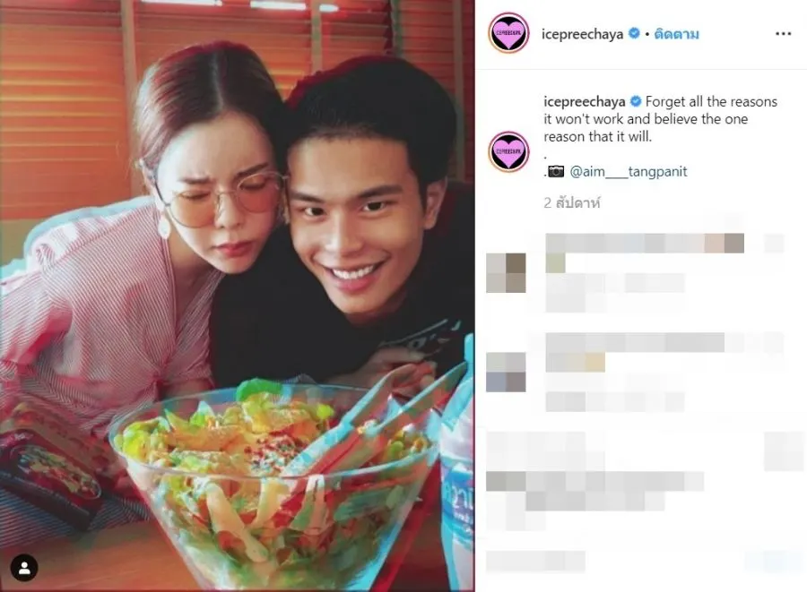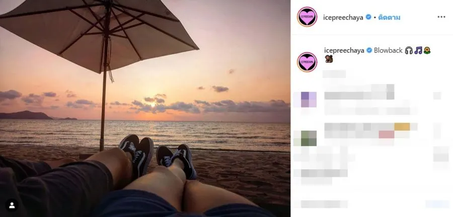 ล่าสุดมีภาพสุดสวีทริมหาด พร้อมทั้งใส่รองเท้าคู่เหมือนกัน ซึ่งสาว “ไอซ์” เองยังได้แท็กหาฝ่ายชาย Blowback ทำเอาหลายคนเข้ามาคอมเมนต์แซวในความรักครั้งใหม่ของทั้งสองโดย ระบุว่า