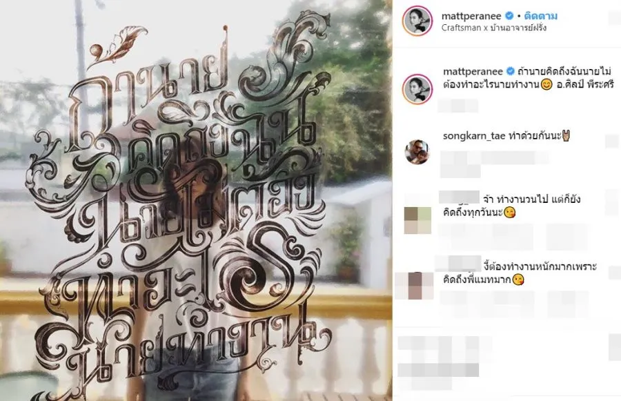 “ถ้านายคิดถึงฉันนายไม่ต้องทำอะไรนายทำงาน อ.ศิลป์ พีระศรี” เหมือนจะสื่อความหมายถึงใคร หนุ่มสงกรานต์ ก็เข้ามาคอมเมนต์ทันทีว่า “ทำด้วยกันนะ” พร้อมชูนิ้วส่งสัญญาณ ด้วย ท่ามกลางคนที่เข้ามาอดแซวไม่ได้กับความหวานของคู่นี้ แม้ต้องต่างคนทำงาน