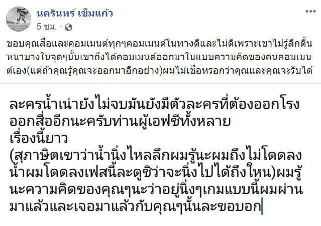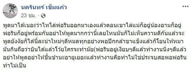 ขณะที่ในเฟซบุ๊ก นครินทร์ เข็มแก้ว คนขับรถของอาม ที่อามเรียกว่า พ่อริน ได้โพสต์ข้อความว่า “ตั้งแต่อยู่กันมา สองขาที่เดินออกมาจากไหพร้อมกัน มิเชื่อใจกันเลยสักนิด (เก่าไปใหม่มา) สู้กันมาตั้งแต่เริ่มต้น แต่สุดท้ายความดีก็แพ้คำพูด (ผู้จัดการหนึ่งก็ไปละ ส่วนผมพ่อรินที่สู้กันมาด้วยตลอดแต่ก็ต้องมาแพ้เพราะพ่อรินไม่ดีพอ) พ่อรินทำดีที่สุดแล้วกับเรื่องงานไม่เคยบ่น ไม่เคยคิดว่าจะเหนื่อยกับการขับรถ และต้องคุยกับผู้จัดสารพัดที่จะทำแต่ไม่คิดว่าจะเจอกับตัวเองวันนี้ พ่อรินขอลาออกจากหน้าที่ที่พ่อรินทำนะ ตอนนี้เวลานี้นะน้องอาม ชุติมา โชคดีนะทุกคน จากพ่อริน” และ “อะไรจะเกิดต่อไปมีอีกเยอะ สำหรับสิ่งที่เห็นและสิ่งที่ทำในเมื่อความจริงที่รู้ที่เห็นมันต้องออก ขอบคุณนะที่พากันพูดออกมาให้ได้ยินนะ ต่อไปนี้ขอพ่อรินพูดบ้างแล้วกัน”