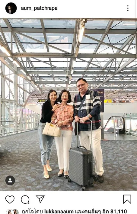 ล่าสุด อั้ม ได้โพสต์ ล่าสุด รูป คุณพ่อคุณแม่ พร้อม ระบุข้อความว่าา…….ทั้งพ่อแม่และเพื่อน @a o m m m y หนีไปเที่ยวกันหมดเลย ส่วนอั้มและ @y u i_papa เฝ้าบ้าน เลี้ยงหมา