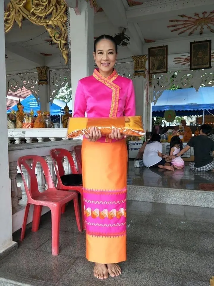 แต่ที่พิเศษกว่านั้นคือ เธอตัดชุดไทยเพื่อใส่บาตรทำบุญโดยเฉพาะ จำนวนเป็นร้อยๆ ชุดเลยทีเดียว บ้างก็ตัดด้วยผ้าไหมไทยสีสด บ้างก็ตัดด้วยผ้าทอพื้นเมือง ผ้าซิ่นของไทย เรียกว่าใส่ชุดไทยเริ่ชชๆ ไปทำบุญทุกวัน งามทั้งกายทั้งใจจริงๆ เลยจ้า เธอเล่าให้ ‘แพรวดอทคอม’ ฟังว่า