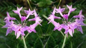 กุ้ยช่ายประดับ หรือ กุ้ยช่ายม่วง เป็นไม้ยืนต้น อายุนานหลายปี ความสูงประมาณ 60 เซนติเมตร มีหัวใต้ดิน ขึ้นเป็นกอ ลักษณะใบเรียวยาว แบน ปลายแหลม ความยาวประมาณ 30 เซนติเมตร ออกดอกสีม่วงลักษณะคล้ายดาวหกแฉก มีกลิ่นคล้ายกุ้ยช่ายทั้งที่ดอกและใบ ซึ่งนอกจากจะส่วนที่ช่วยป้องกันยุงและหมัดเข้าบ้าน ยังสามารถทำให้งูไม่กล้าเข้ามาในเขตบ้านและสวนของเราได้ด้วย
