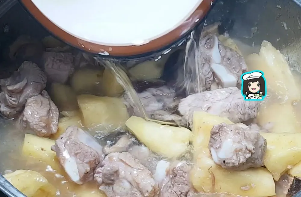 4.เติมน้ำเปล่าและน้ำที่แช่เห็ดหอมลงไปเร่งไฟจนเดือด