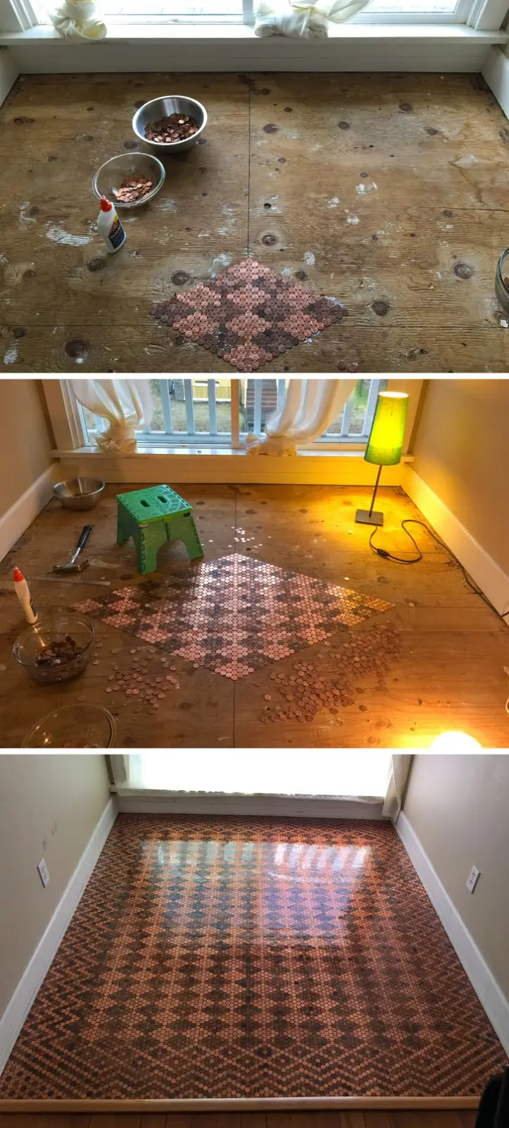 พื้นห้องจัดเรียงด้วยเหรียญและติดด้วยกาวอีพ็อกซี่