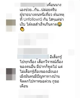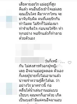 มีไอจีหนึ่ง เข้ามาเม้นต์ โยงดราม่า กรณีที่นางเอกซุปตาร์ อั้ม-พัชราภา เลิกกับ ไฮโซพก-ประธานวงศ์ ข้อความว่า อั้มเลิกพก รู้ไหมใครดีใจสุด ก็วุ้นเส้น ไง กับพอลล่า ไม่เชื่อดูต่อไปครับ คุณพก(อิโมจิค่อนหัวเราะน้ำตาไหล) เก็บให้มิดหละ”