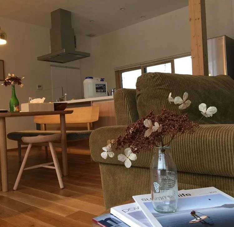 เคนบอกว่า กว่าจะได้บ้านหลังนี้ไม่ง่าย เริ่มจากเสิร์ชหาข้อมูล จนเจอที่ดินเปล่าอยู่ไกลออกไปในเมืองเดิม เราตัดสินใจสร้างบ้านหลังใหม่ที่นั่น ซึ่งหลังนี้เคนออกแบบเอง ร่วมกับสถาปนิกชาวญี่ปุ่น เป็นบ้านชั้นเดียวที่มีกลิ่นอายญี่ปุ่น ผสมผสานกับเฟอร์นิเจอร์สไตล์สแกนดิเนเวีย คล้ายๆ บ้านที่เขาใหญ่ของเราค่ะ แต่หลังนี้ใช้เวลาสร้างไม่นาน ประมาณ 8 เดือน ไปนานตรงช่วงตกแต่ง เนื่องจากเคนใส่ใจรายละเอียด เขามีแบรนด์เฟอร์นิเจอร์ของดีไซเนอร์ญี่ปุ่นที่ถูกใจอยู่ที่โอซาก้า จึงต้องใช้เวลาขนย้ายเฟอร์นิเจอร์จากโอซาก้ามา