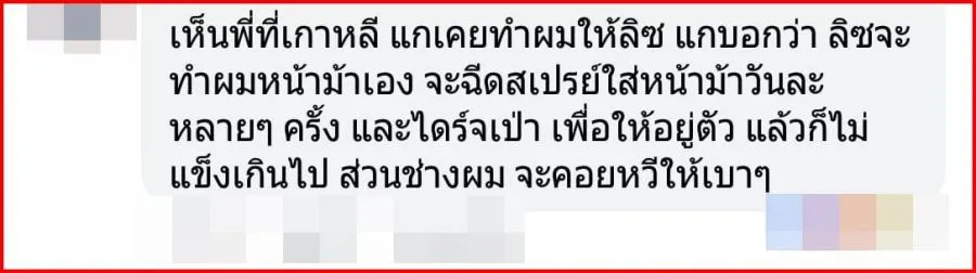 ล่าสุด คุณ Warinthorn Maria Angsuwithaya ได้ออกมาโพสต์ภาพและข้อความผ่านเฟซบุ๊ก เผยความลับของทรงผมหน้าม้าที่อยู่ทรงตลอดเวลาของลิซ่าที่ไม่ว่าจะทำอะไรหน้ามาก็ไม่แตก ว่า “เหตุผลที่ลิซ่าหน้าม้าไม่เเตกเวลาเต้น” เราไปชมภาพกันเลยค่า
