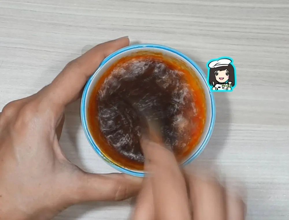 3.ผสมน้ำซอสผัดไว้ก่อน นำพริกเผา น้ำตาลทราย ซีอิ้วขาว น้ำปลา น้ำเปล่า คนให้ส่วนผสมละลายเข้ากัน