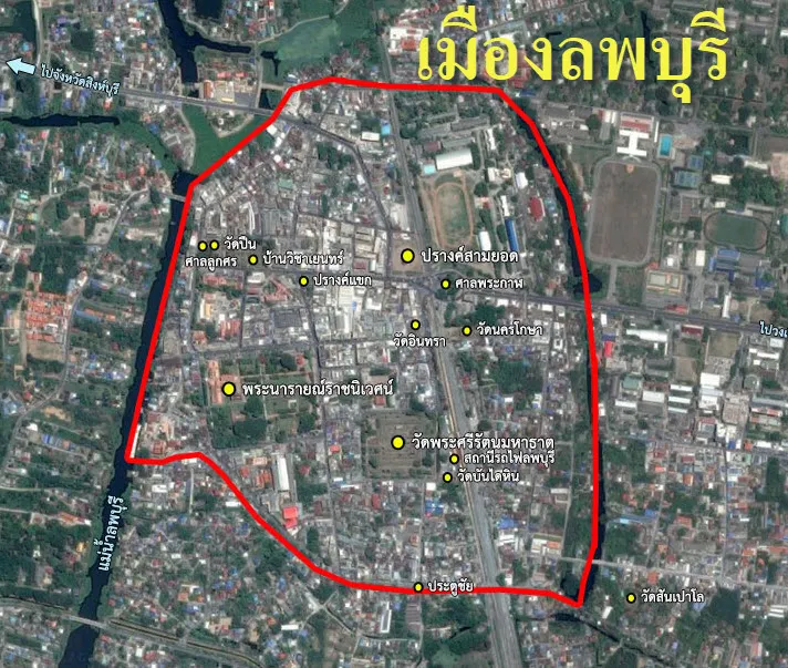 6.เมืองลพบุรี อาจจะดูแปลกแต่ก็มีแม่น้ำตามเคยป้องกันข้าศึกนอกกำแพง