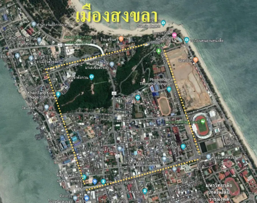 7. เมืองสงขลา บางคนก็ไม่คิดใช่ไหมว่าจะมี สี่เหลี่ยมชัดเจนครับแต่กำแพงเล็กไม่สูงมากลองเข้าไปดูกันนะครับ มีเขาด้วยนะ