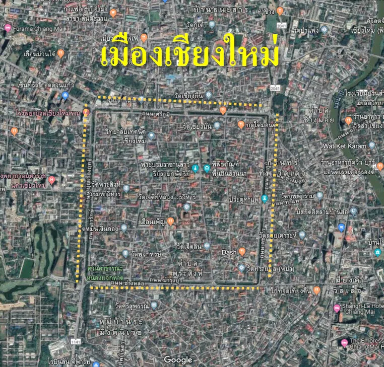 กำแพงเมืองในประเทศไทยในสมัยก่อนจะเป็นอย่างไรถ้ามองจาก Google maps หลายจังหวัดด้วย