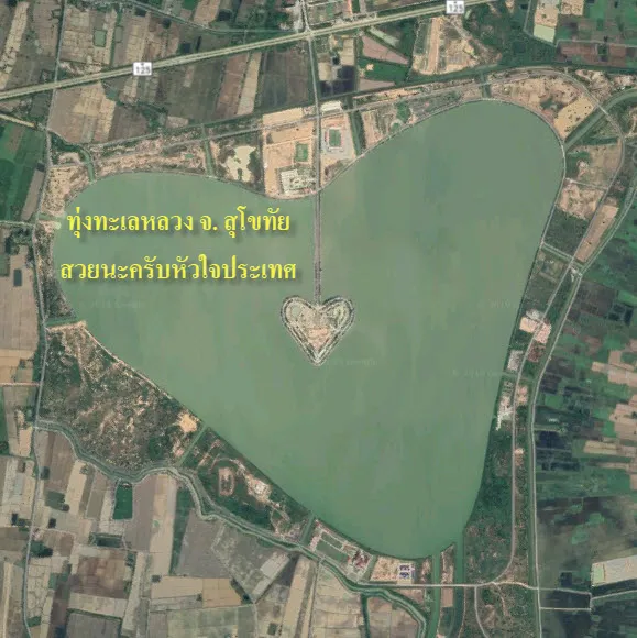 15.ปิดท้ายหัวใจประเทศไทยผมว่าสวยดี มองมาจาก Google maps เห็นรูปหัวใจเลยทุ่งทะเลหลวง จังหวัด สุโขทัย