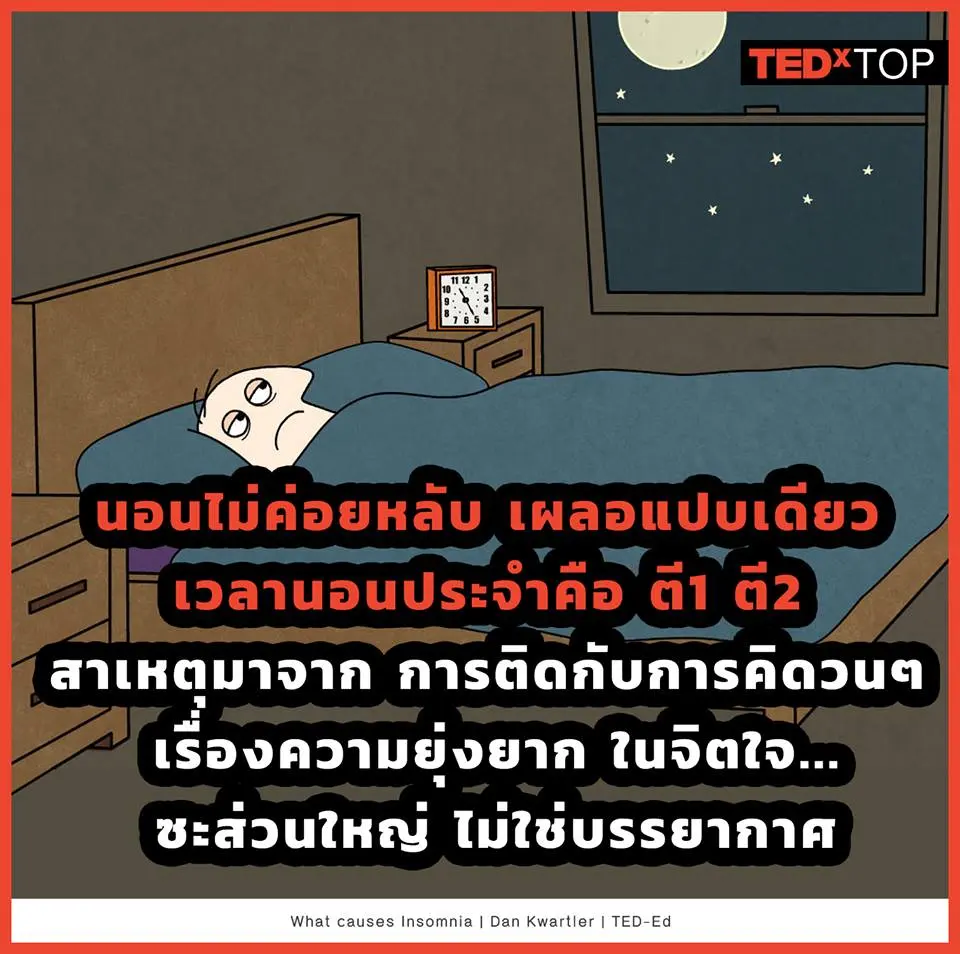 - อะไรคือสิ่งที่ทำให้คุณยังไม่นอน? การครุ่นคิดคำถามล้ำลึก? ความตื่นเต้นเกี่ยวกับทริปครั้งใหญ่ หรือความเครียดจากงานที่ยังไม่เสร็จ? ,การสอบที่กำลังจะมาถึง?