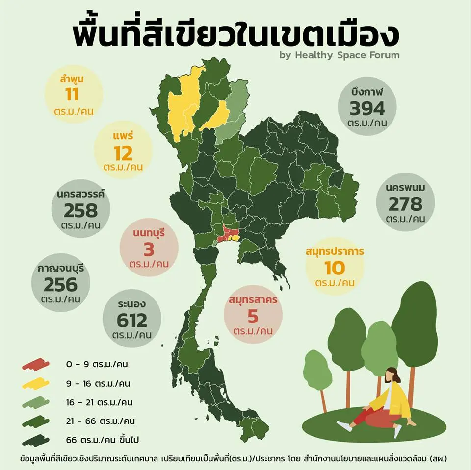 พื้นที่สีเขียวในเขตเมืองของประเทศไทยมีมากแค่ไหน?