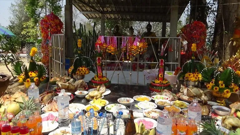 ภายในโคกวัดกาไสย์ หมู่ 4 ตำบลทางพระ อำเภอโพธิ์ทอง จังหวัดอ่างทอง ชาวบ้านเดินทางมาร่วมทำพิธีแก้บนโคกวัดกาไสย์ หลังขอพรสมใจปรารถนา โดยได้นำวงดนตรีมาขับกล่อมบรรเลง พร้อมอาหารคาวหวาน เครื่องเซ่นสังเวย ละครชาตรี เชิญสิ่งศักดิ์สิทธิ์เสยเครื่องเซ่นไหว้ และมีการรำถวาย