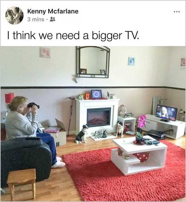 8 “คุณยายของฉันทำทีวีขนาดใหญ่พังดังนั้นพวกเขาจึงใช้ทีวีขนาดเล็กที่มีอยู่ และวันนี้คุณปู่ของฉันโพสต์รูปนี้บน Facebook”
