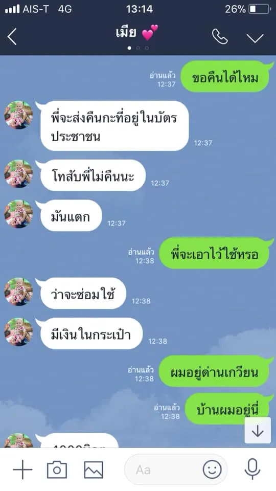 หนุ่มแชร์แชตไลน์ คุยกับคนเก็บกระเป๋าสตางค์-มือถือภรรยาได้ แต่จะขอเก็บไว้ใช้เอง เพราะจอแตก เงินก็ไม่คืน ..