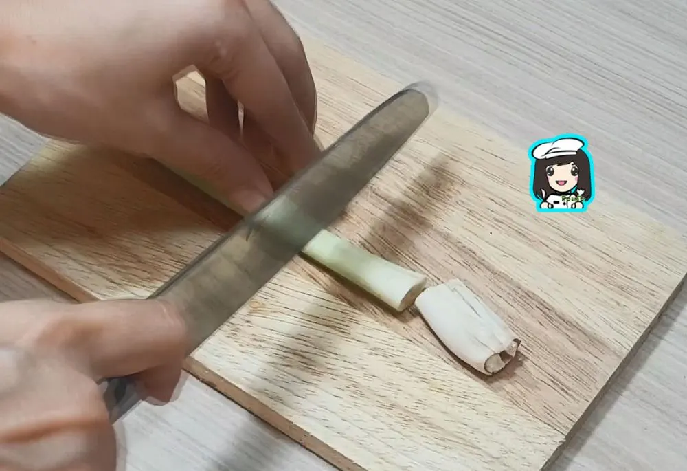 1.หั่นตะไคร้เป็นท่อนสั้นๆ