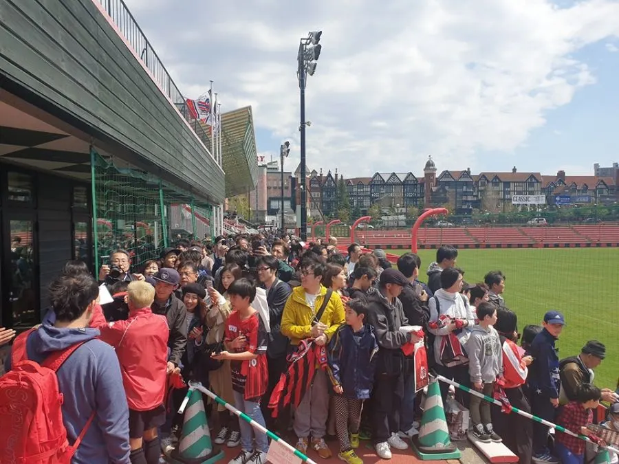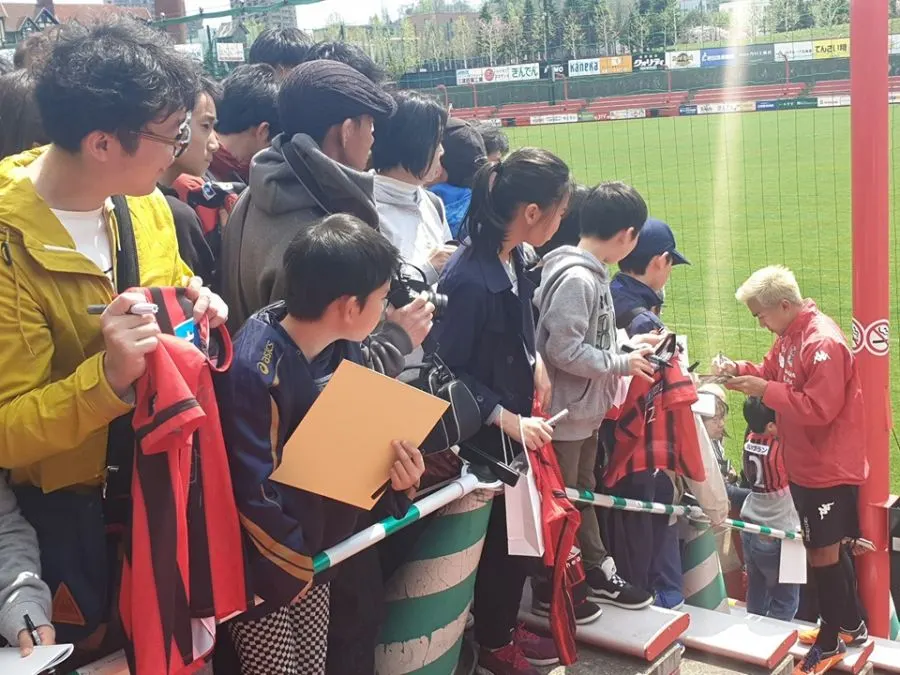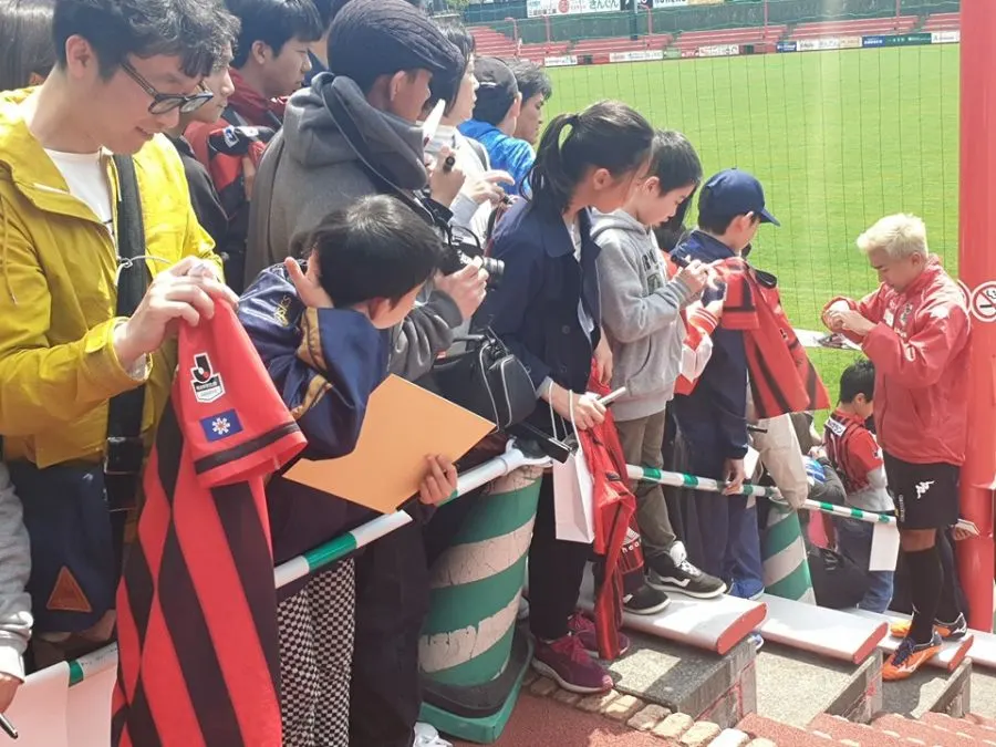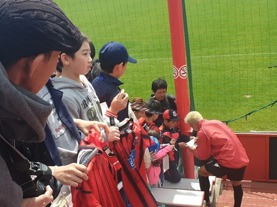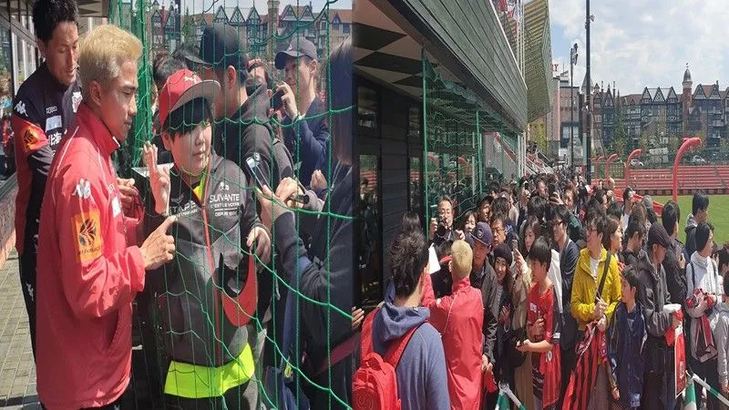 "เจ" เนื้อหอมจัด แค่ซ้อมบอล แฟนบอลชาวญี่ปุ่นแย่งขอลายเซ็นต์คิวยาวแน่นสนาม