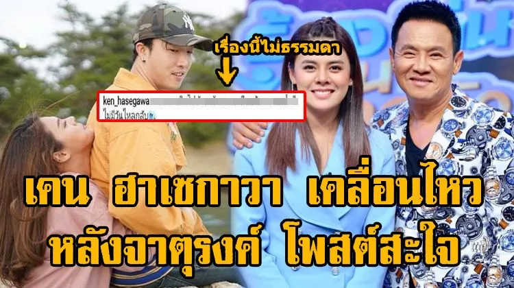 แต่ที่แซ่บไปกว่านั้นคือ เคน ฮาเซกาวา โพสต์รูปตนเองเล่นน้ำ พร้อมข้อความปริศนา หลายคนเลยโยงว่านี้เป็นข้อความที่เขาจะสื่อถึงเรื่องความรักของเขากับอดีตแฟนสาวลูกตลกคนดัง“กาลเวลาเดินไปข้างหน้าเสมอเหมือนกับ กระแสน้ำที่ไม่มีวันไหลกลับ” หลังจากนั้น สำนักข่าวอัมรินทร์ ทีวี เลยติดต่อไปขอสัมภาษณ์หนุ่มเคน โดยหนุ่มเคน ออกมาเปิดใจ ยอมรับแล้วว่า เลิกกันได้ 2 อาทิตย์ สาเหตุจากนิสัยส่วนตัว ไม่เกี่ยวกับกระแส พ่อรงค์ไม่ปลื้ม แต่อย่างใด